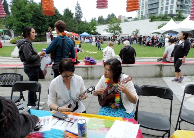 Join us on Sunday, May 12, for an outdoor ukulele jam at the beautiful amphitheatre, the Coquitlam Town Centre Park Community Plaza.