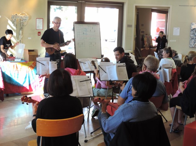 For the fourth year in a row, Cutie Circle volunteers (aka Cuties) will once again be offering aspiring adult ukulele players a free ukulele workshop series on Saturday afternoons.